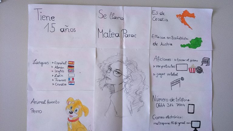 Actividades para motivar con el español a principiantes. Entrevistar y presentar a un compañero de manera divertida, con preguntas clásicas, pero también con otras más originales como preguntar el número de la suerte o el color favorito. Y obteniendo como resultado un póster atractivo y hecho con amor que sirve para decorar la clase.